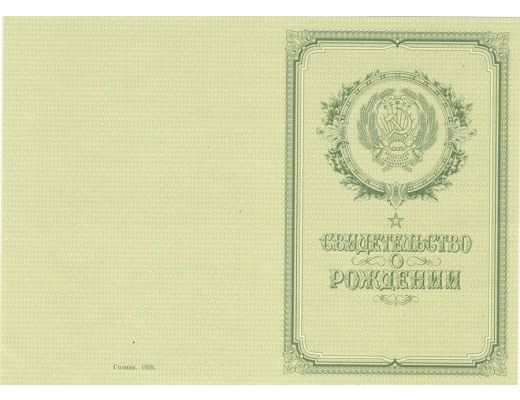 - При желании вы можете заказать свидетельство о рождении СССР 1954 - 1970 гг. времен СССР;