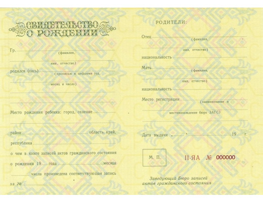- При изготовлении свидетельств о рождении СССР 1954 - 1970 гг. используем бланки со всеми элементами защиты;