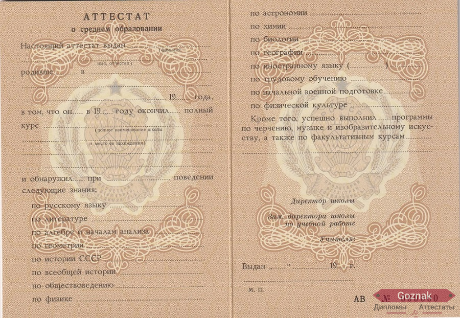 - При желании вы можете заказать аттестат за 10 класс 1972 - 1989 гг. времен СССР;