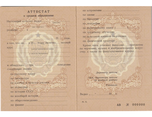 Купить аттестат за 10 класс 1972 - 1989 гг. легко!