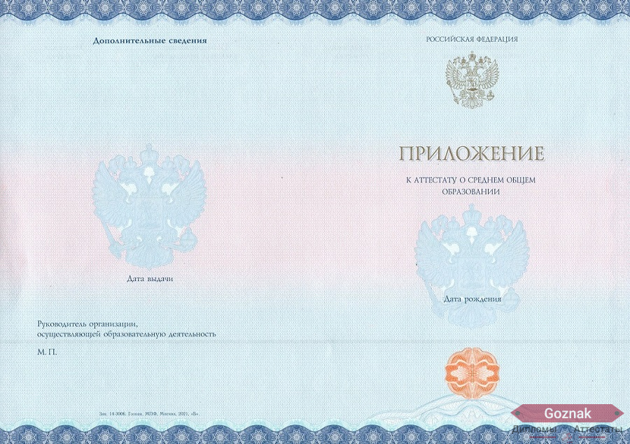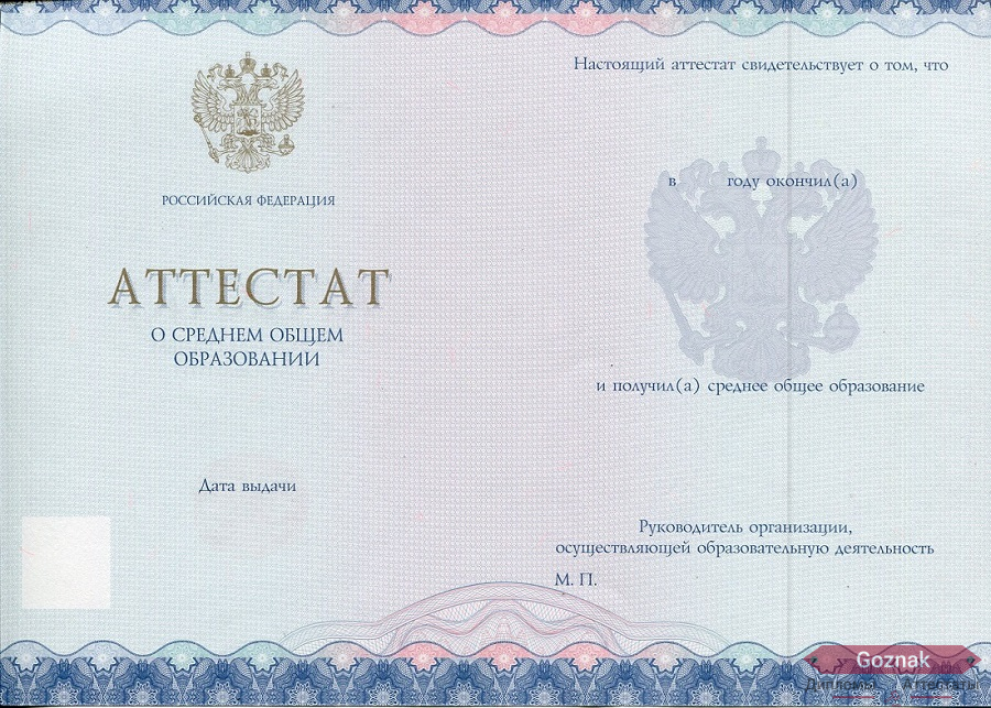 Компания «Гознак-Дипломы» успешно работает на рынке более 15 лет и предлагает Вам купить аттестат за 11 класс 2021 - 2025 гг. Новый образец выгодно по хорошим ценам на настоящем бланке Гознак с оригинальными печатями и подлинными подписями. Документы имеют все степени защиты, оформлены по государственным нормам и с учетом особенностей конкретных учебных заведений. Аттестат за 11 класс 2021 - 2025 гг. Новый образец на 100% соответствуют подлинникам, поэтому проблем точно не доставят, которые без опаски можно предоставлять в отдел кадров: