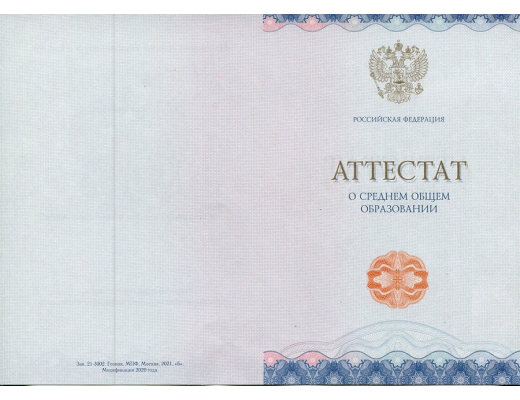 Аттестат за 11 класс 2021 - 2025 гг. Новый образец заполняется профессиональными специалистами по установленным правилам и нормам министерства образования РФ. Документ на 100% соответствует всем требованиями Министерства Образования и Науки РФ.