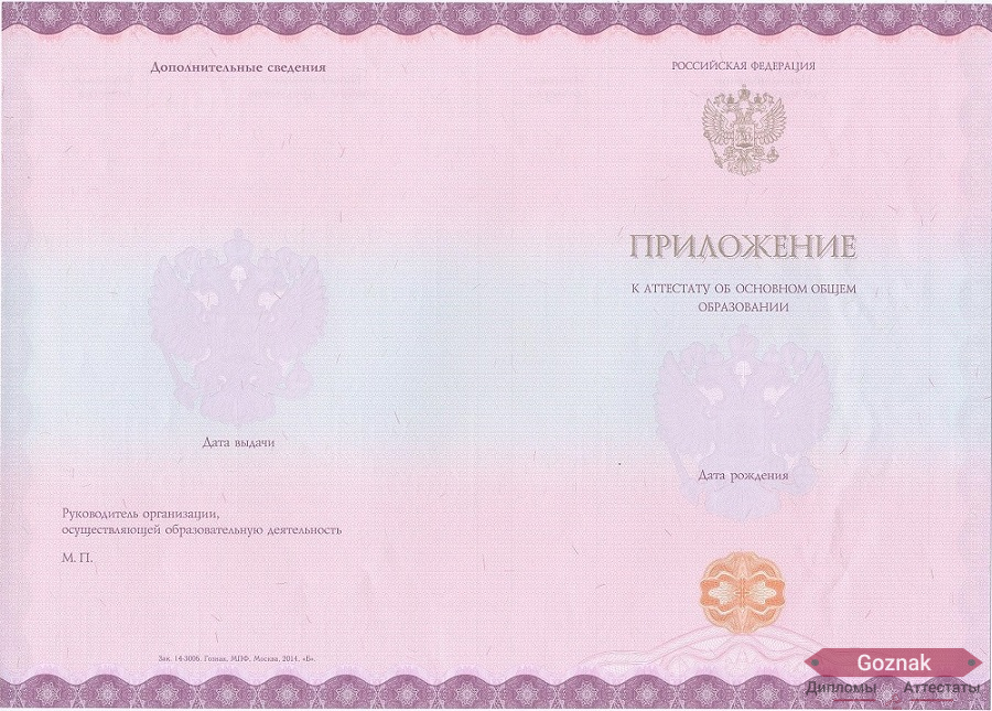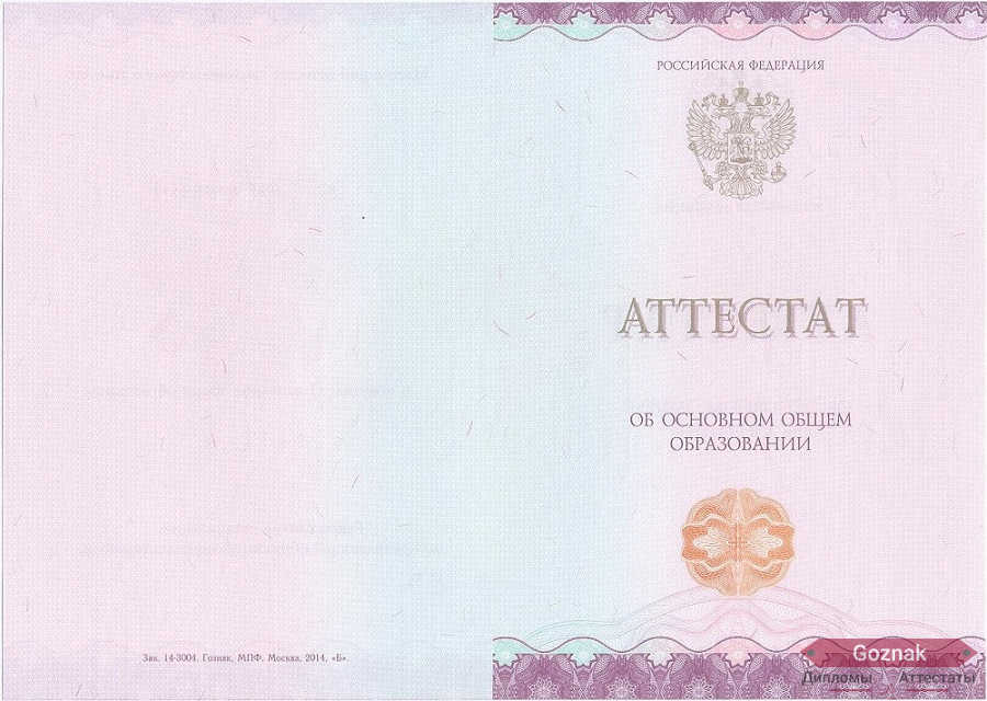 Компания «Гознак-Дипломы» успешно работает на рынке более 15 лет и предлагает Вам купить аттестат за 9 класс 2014 - 2020 гг. выгодно по хорошим ценам на настоящем бланке Гознак с оригинальными печатями и подлинными подписями. Документы имеют все степени защиты, оформлены по государственным нормам и с учетом особенностей конкретных учебных заведений. Аттестат за 9 класс 2014 - 2020 гг. на 100% соответствуют подлинникам, поэтому проблем точно не доставят, которые без опаски можно предоставлять в отдел кадров: