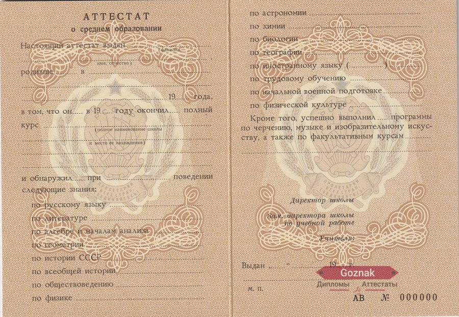 - При желании вы можете заказать аттестат в городе России времен СССР;