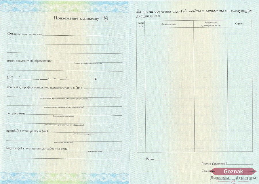 - К документу в обязательном порядке предусматривается приложение со списком предметов по учебному плану и оценками на ваш выбор;