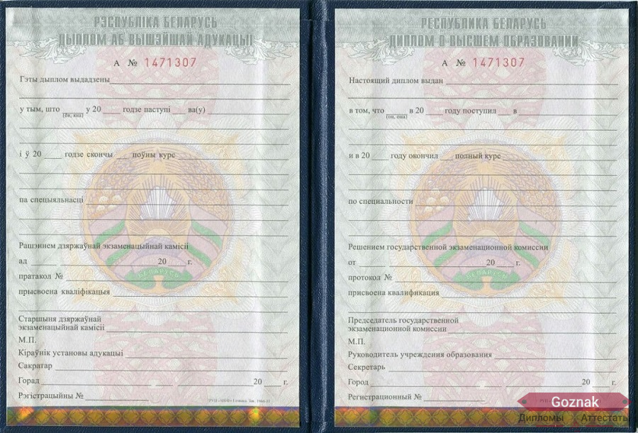 Компания «Гознак-Дипломы» успешно работает на рынке более 15 лет и предлагает Вам купить диплом о высшем образовании Белоруссии 2011 - 2025 гг. выгодно по хорошим ценам на настоящем бланке Гознак с оригинальными печатями и подлинными подписями. Документы имеют все степени защиты, оформлены по государственным нормам и с учетом особенностей конкретных учебных заведений. Диплом о высшем образовании Белоруссии 2011 - 2025 гг. на 100% соответствуют подлинникам, поэтому проблем точно не доставят, которые без опаски можно предоставлять в отдел кадров: