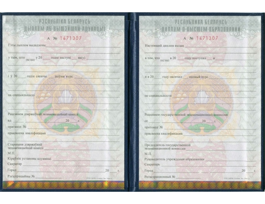 - При изготовлении дипломов о высшем образовании Белоруссии 2011 - 2025 гг. используем бланки со всеми элементами защиты;
