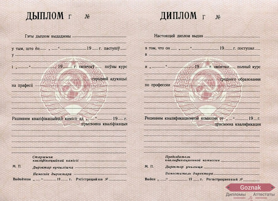 - При желании вы можете заказать диплом ПТУ / училища Белоруссии 1970 - 1993 гг. времен СССР;