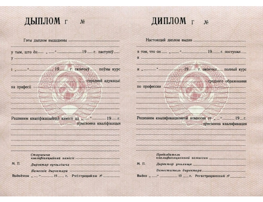 Диплом ПТУ / училища Белоруссии 1970 - 1993 гг.