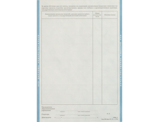 - К документу в обязательном порядке предусматривается приложение со списком предметов по учебному плану и оценками на ваш выбор;