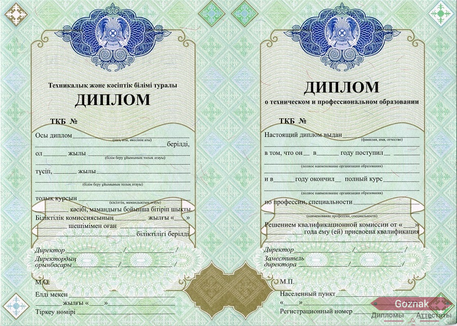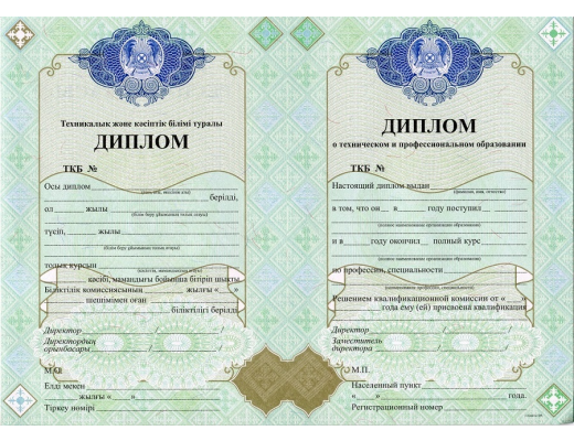 Диплом техникума Казахстана 2000 - 2025 гг.