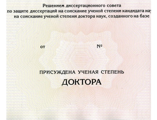 Дипломы доктора наук 2017 - 2025 гг. заполняется профессиональными специалистами по установленным правилам и нормам министерства образования РФ. Документ на 100% соответствует всем требованиями Министерства Образования и Науки РФ.